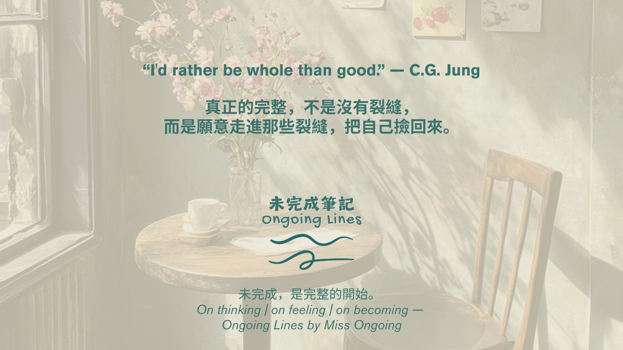 未完成,是完整的開始。 因為有縫隙,光才能照進來。 The cracks are where the light gets in — on thinking, on feeling, on becoming.